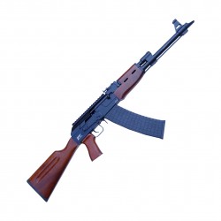 Replica fedelmente l’iconico AK, con il caratteristico caricatore a banana, fornito in due versioni da 10 colpi e 5 colpi. Il sistema è a funzionamento semiautomatico, capace di camerare anche cartucce Magnum, garantendo versatilità e prestazioni elevate. Testato fino a 55gr